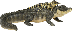 Beside the cage marked CROCODILE.
